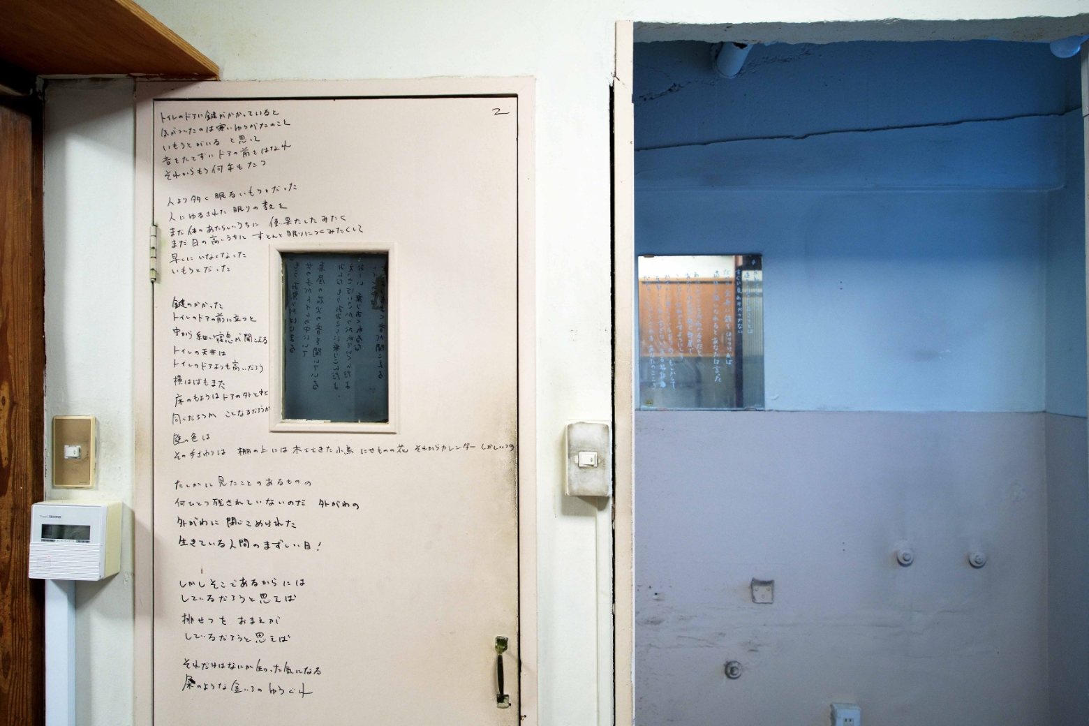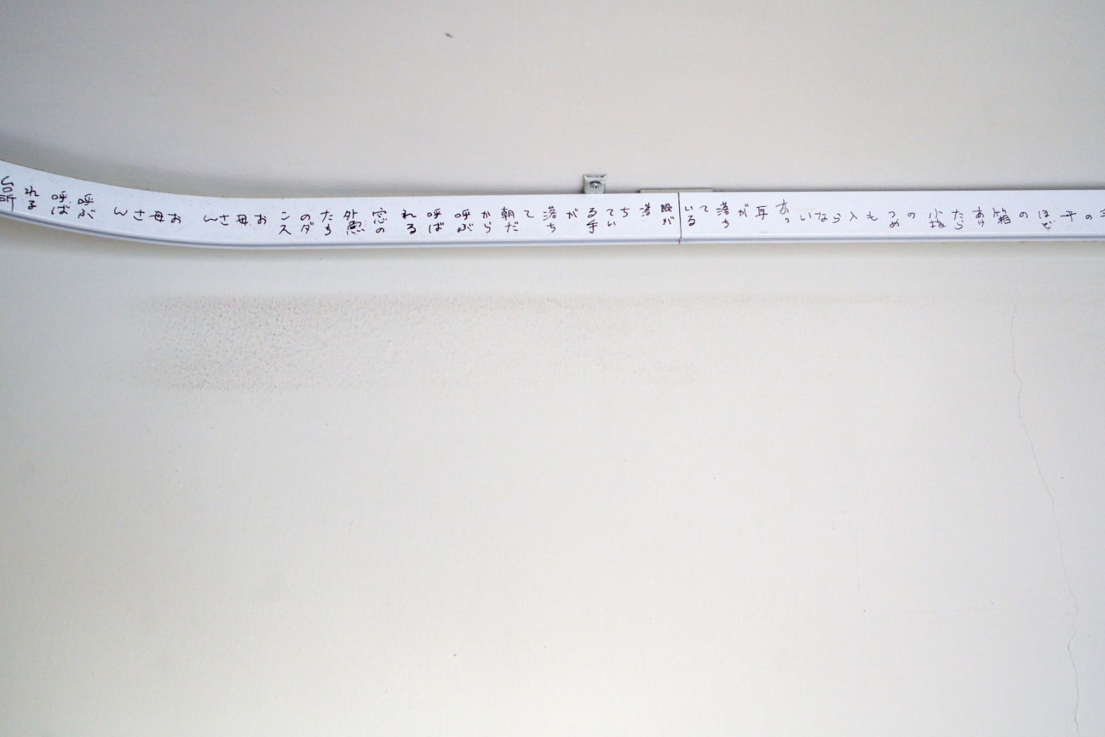 初の展示となる今回、そんな詩人・向坂くじらがテーマに選んだのは「家」。リモコン、冷蔵庫、カーテンレール、洗濯機、カトラリー……会場内に本展のために建てられた「家」のあらゆる場所に、詩が宿っています。リアルな生活空間に入り込み、部屋のあちこちにあるモノに触れ、そこに書かれた詩を体験する。まったく新しいインスタレーション作品が完成しました。