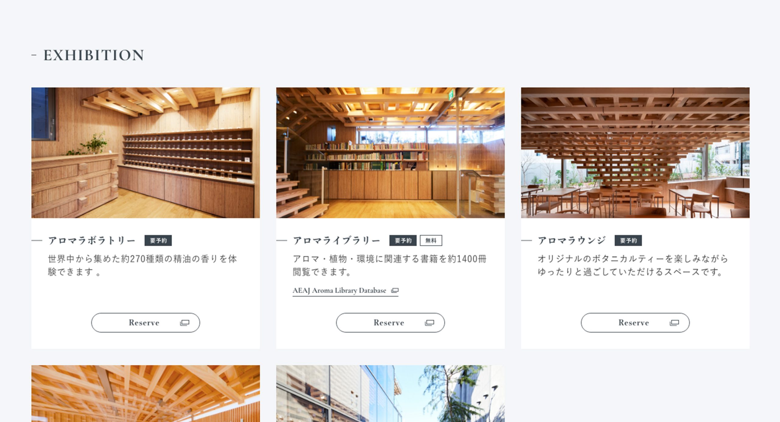 隈研吾建築都市設計事務所が設計した新たな施設「AEAJグリーンテラス」は、アロマの魅力を五感で体験できる場所。ガラス張りの外観に、精緻な木組みデザインが特徴です。