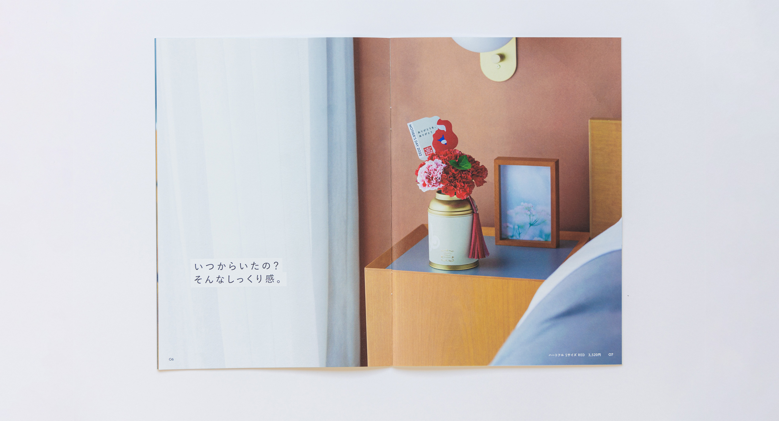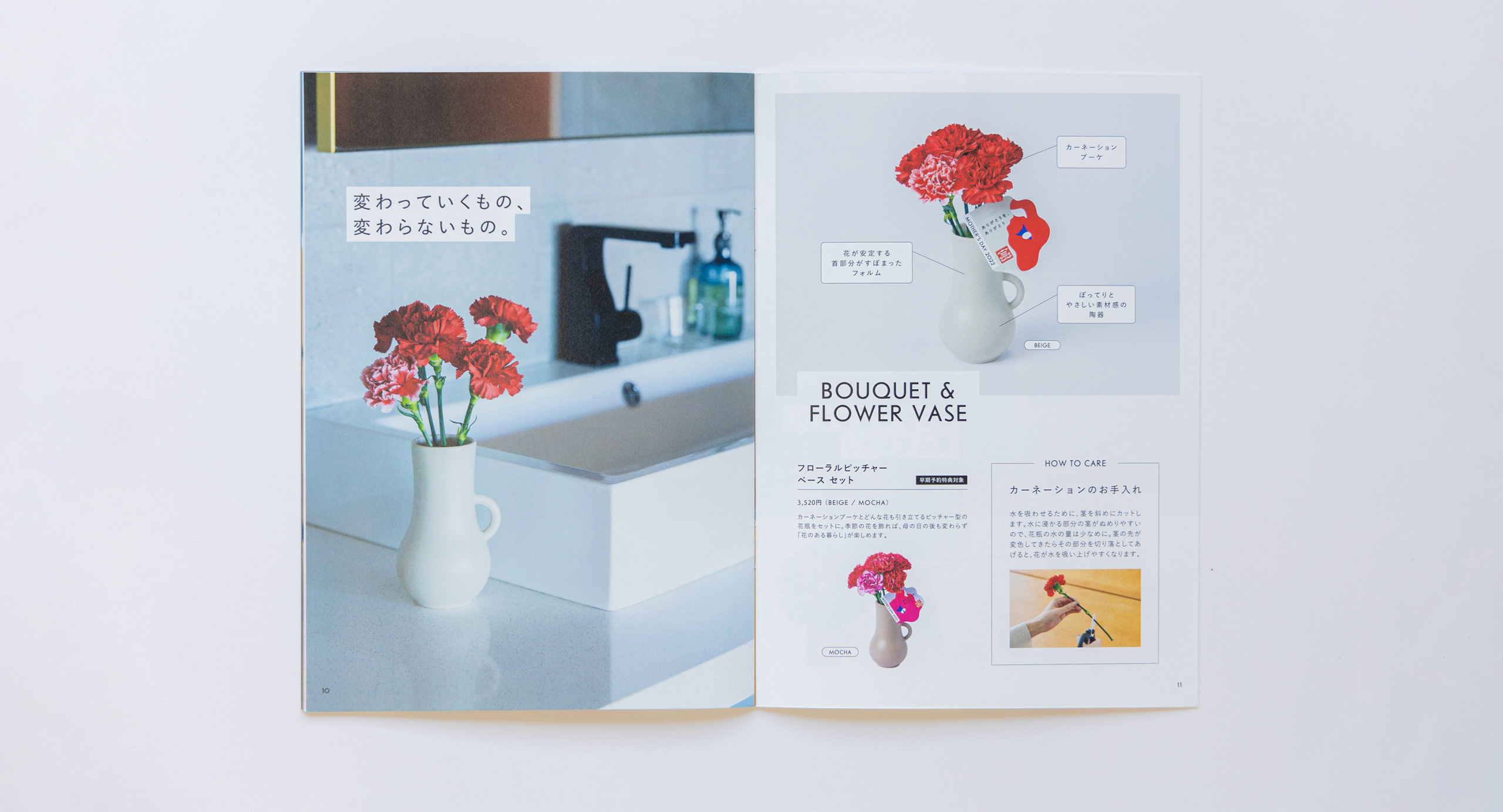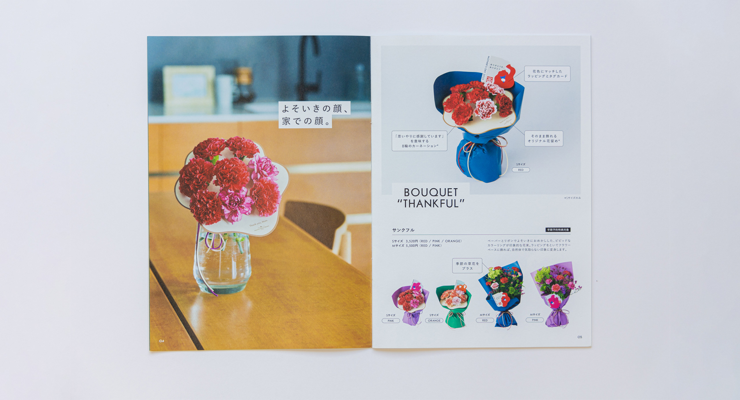 女性と花束とが1本の赤いカーネーション内に含まれる「渾然一体感」のある印象的なビジュアルの力も大きく、 店頭でもオンラインでもたくさんの反響をいただきました。